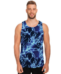 Blue Electric Lightning Print Men’s Tank Top