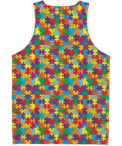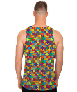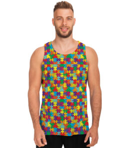 Colorful Autism Awareness Puzzle Print Men’s Tank Top