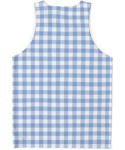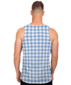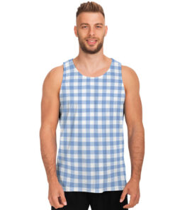 Cornflower Blue And White Gingham Print Men’s Tank Top