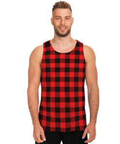 Hot Red Buffalo Plaid Print Men’s Tank Top