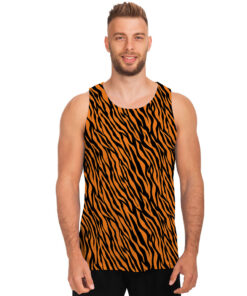 Orange And Black Tiger Stripe Print Men’s Tank Top