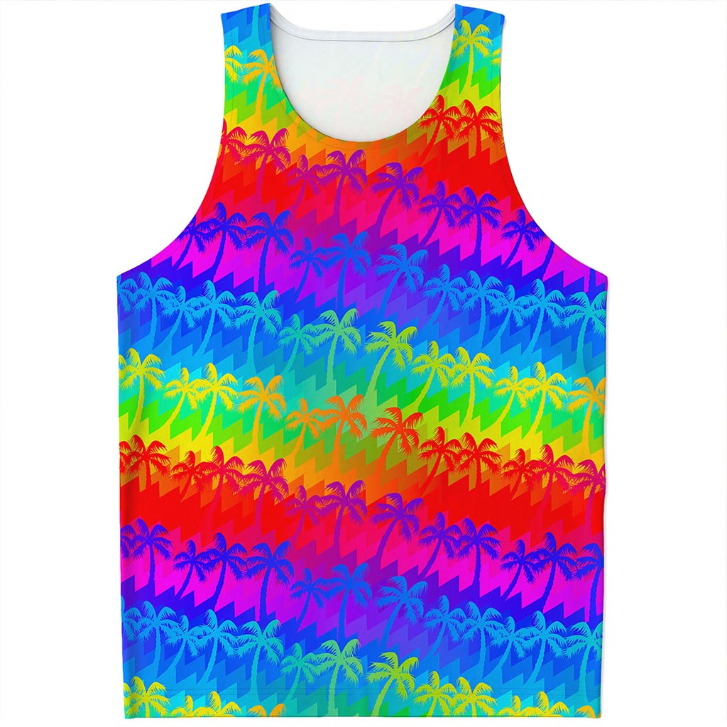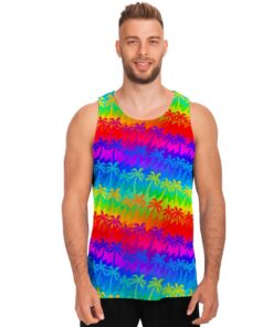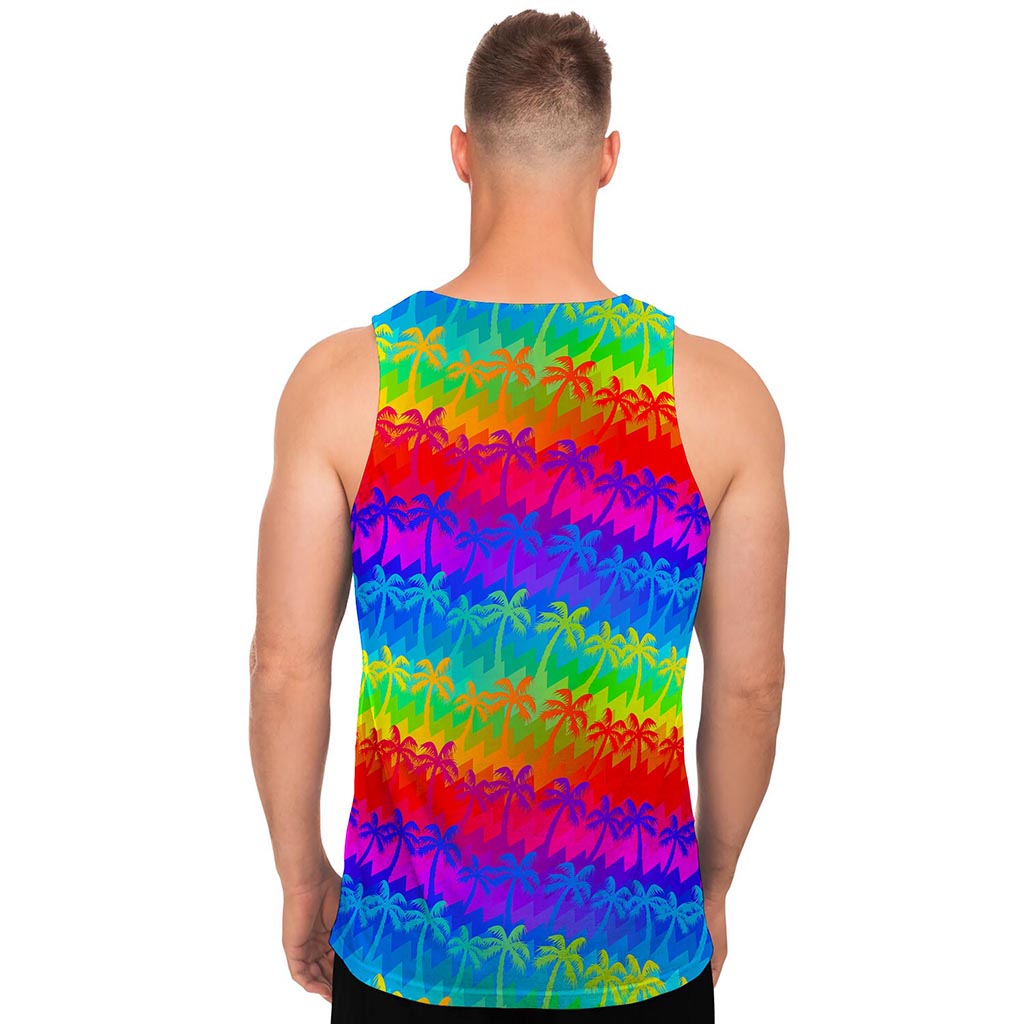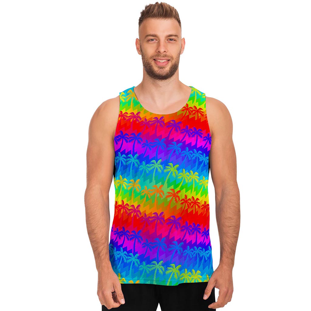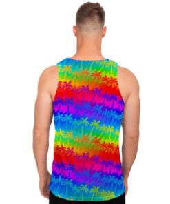 Rainbow Palm Tree Pattern Print Men’s Tank Top