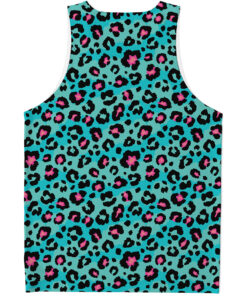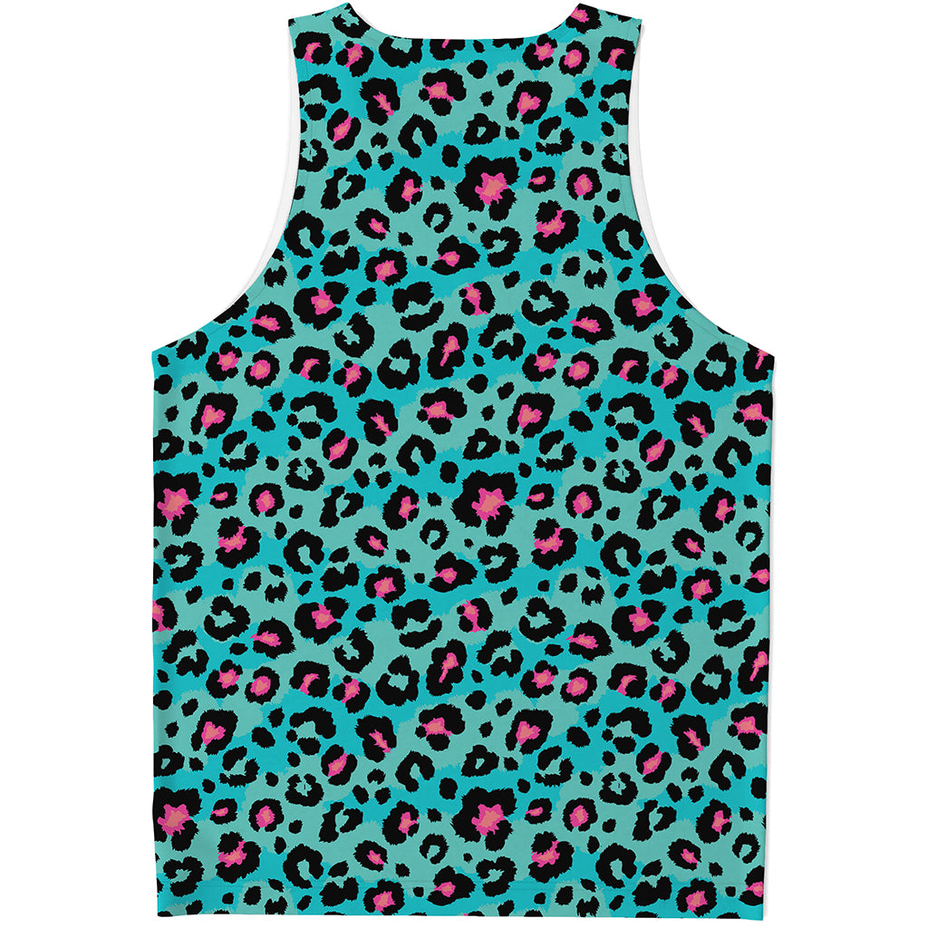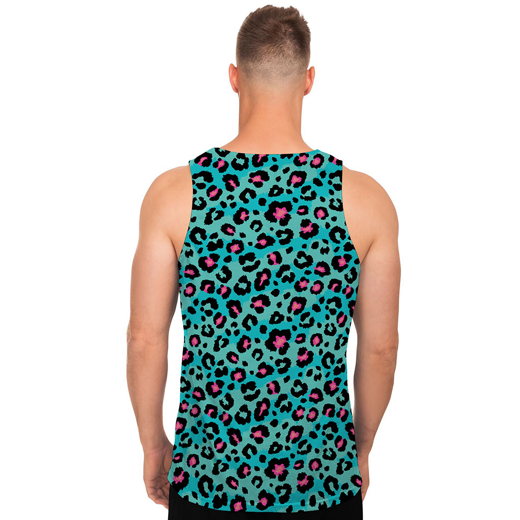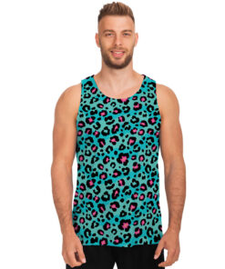 Turquoise And Pink Leopard Print Men’s Tank Top