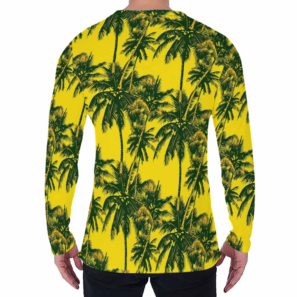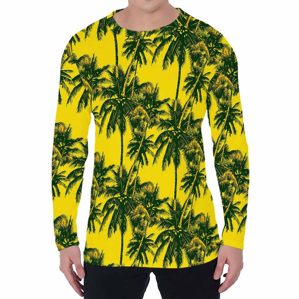 Yellow Palm Tree Pattern Print Men’s Long Sleeve T-Shirt