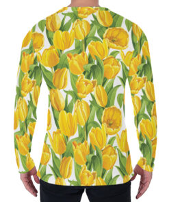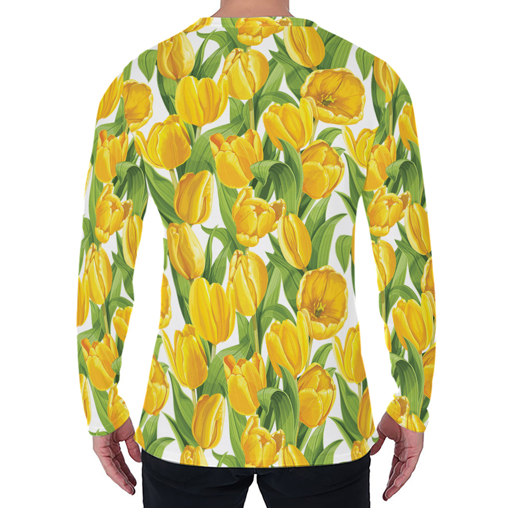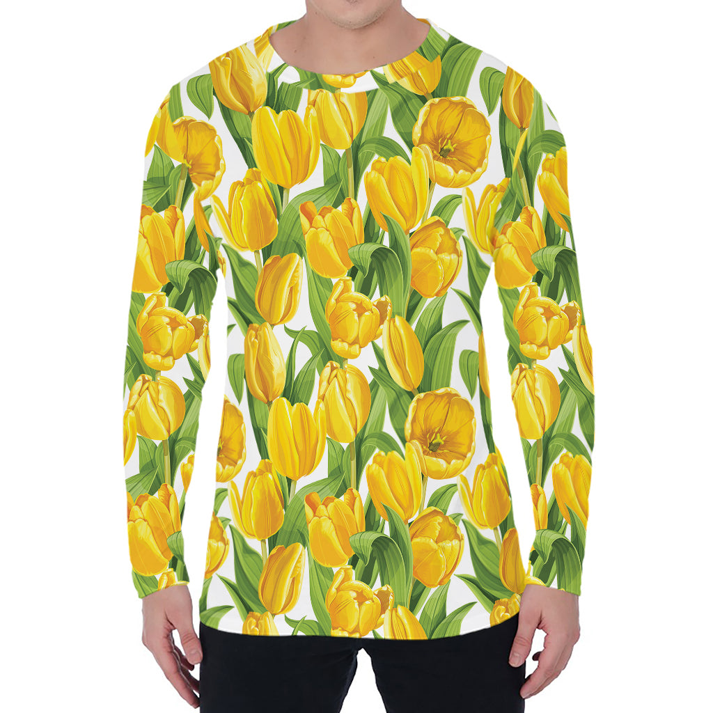 Yellow Spring Tulip Pattern Print Men’s Long Sleeve T-Shirt