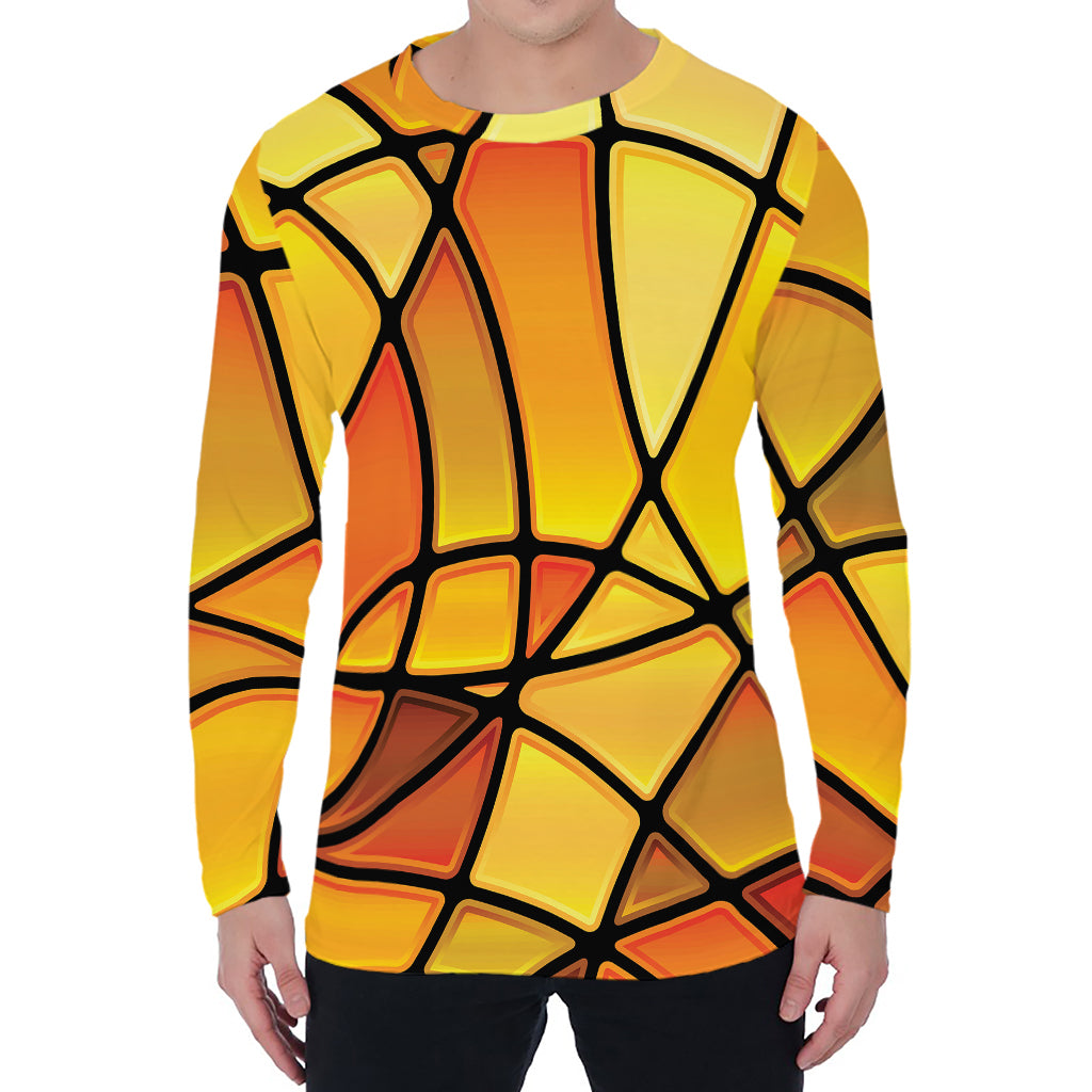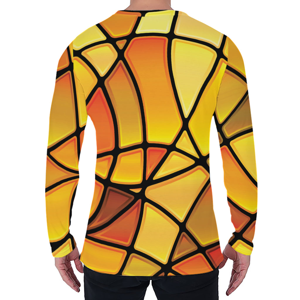Yellow Stained Glass Mosaic Print Men’s Long Sleeve T-Shirt