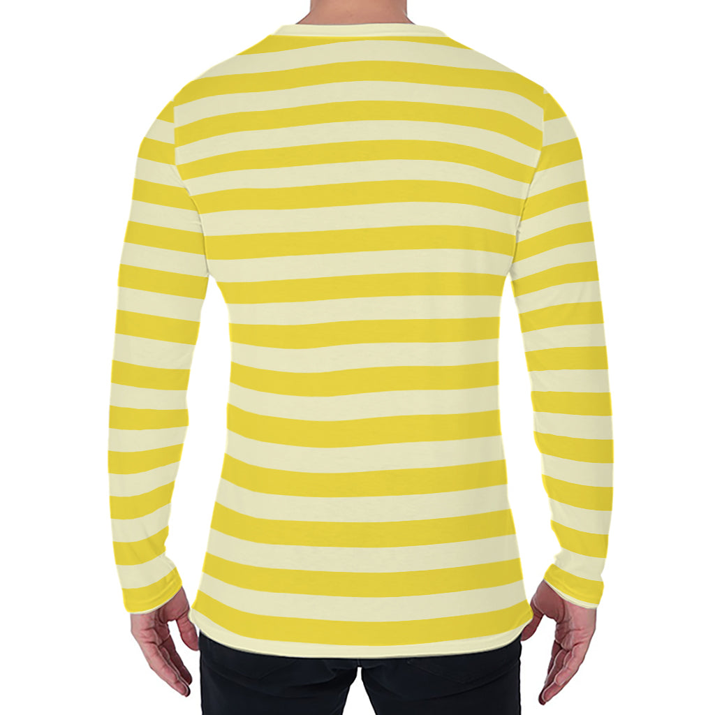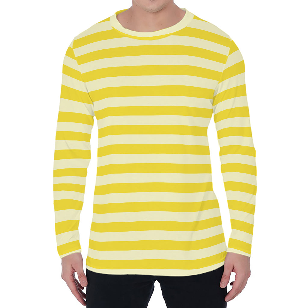 Yellow Striped Pattern Print Men’s Long Sleeve T-Shirt