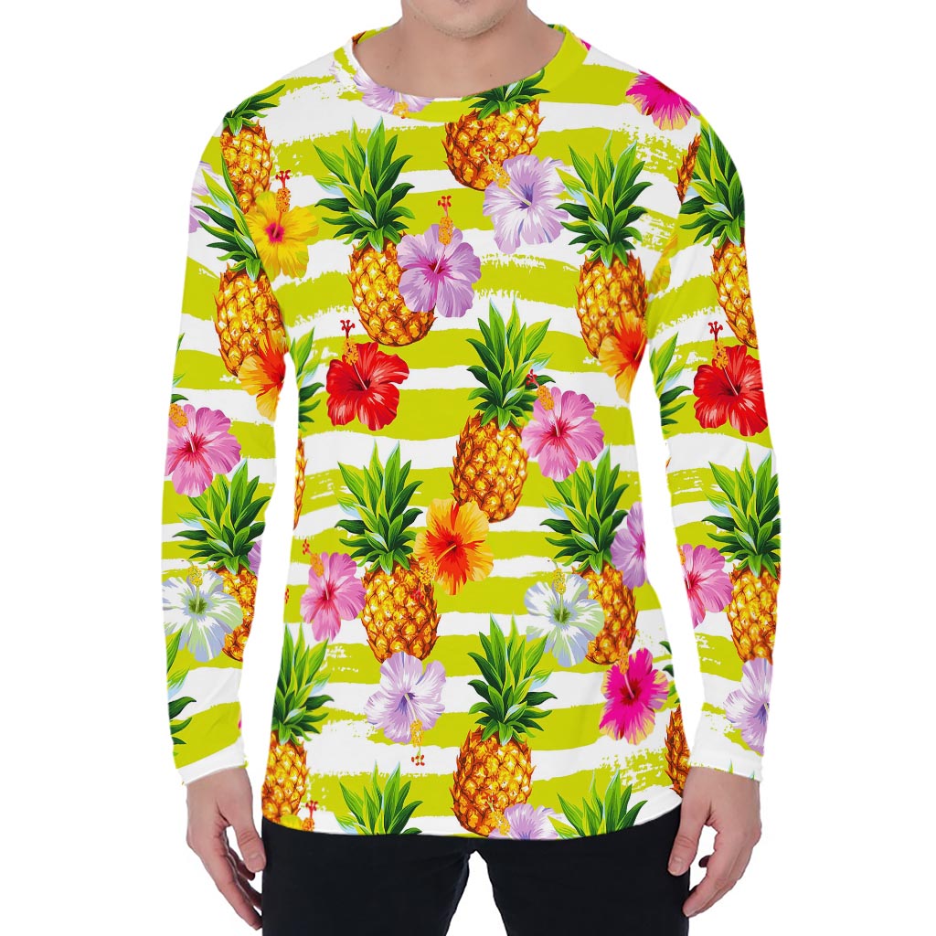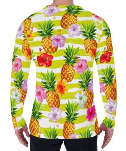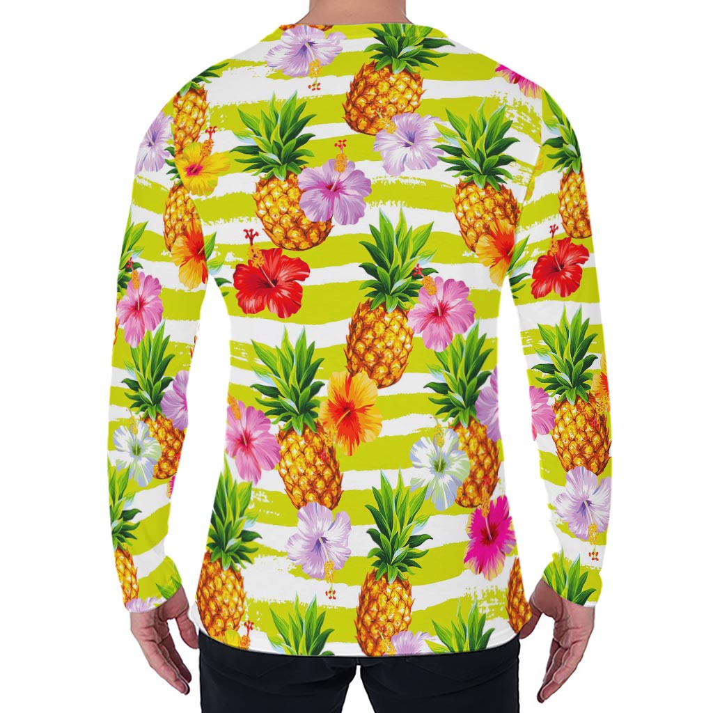 Yellow Striped Pineapple Pattern Print Men’s Long Sleeve T-Shirt