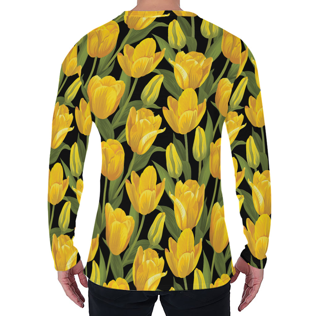 Yellow Tulip Pattern Print Men’s Long Sleeve T-Shirt