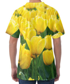 Yellow Tulip Print Men’s Velvet T-Shirt