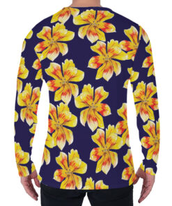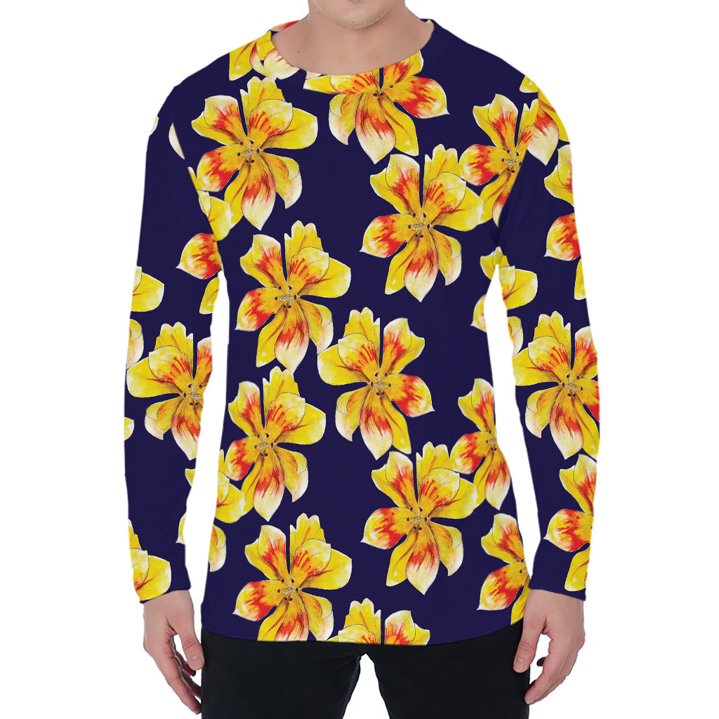 Yellow Watercolor Lily Pattern Print Men’s Long Sleeve T-Shirt