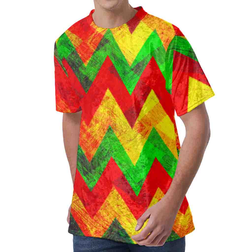 Zig Zag Reggae Pattern Print Men’s Velvet T-Shirt