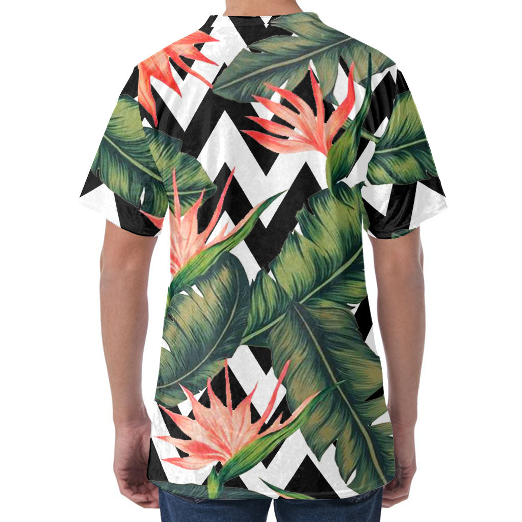 Zig Zag Tropical Pattern Print Men’s Velvet T-Shirt