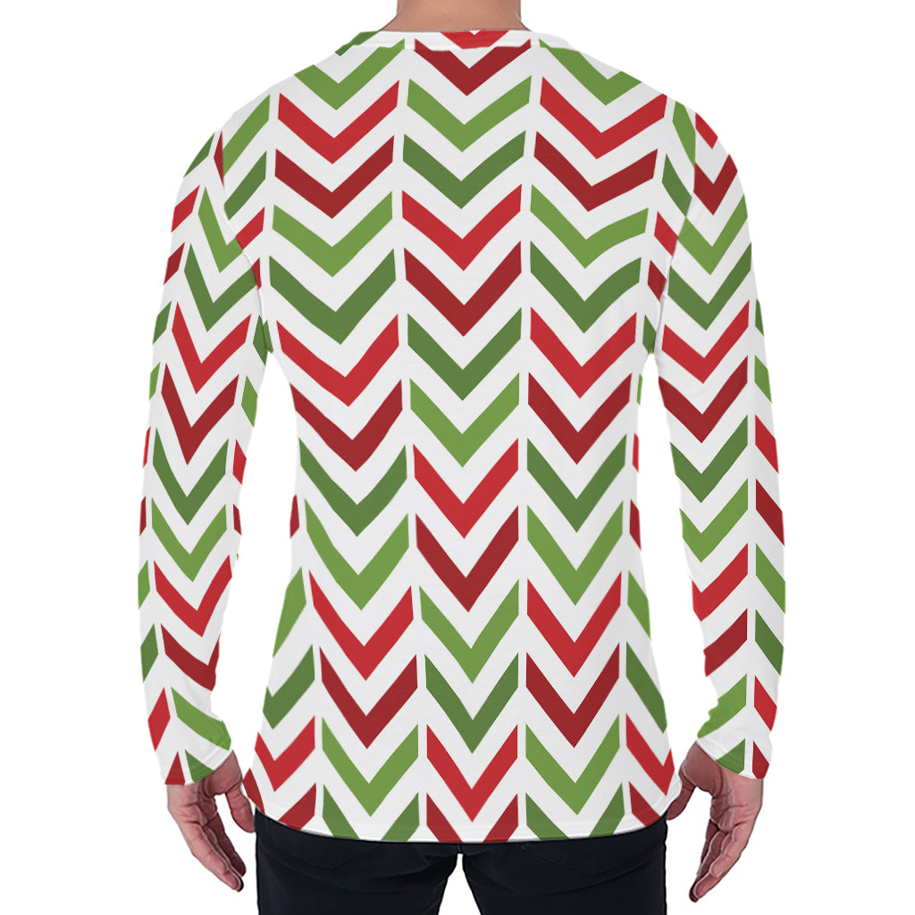 Zigzag Merry Christmas Pattern Print Men’s Long Sleeve T-Shirt