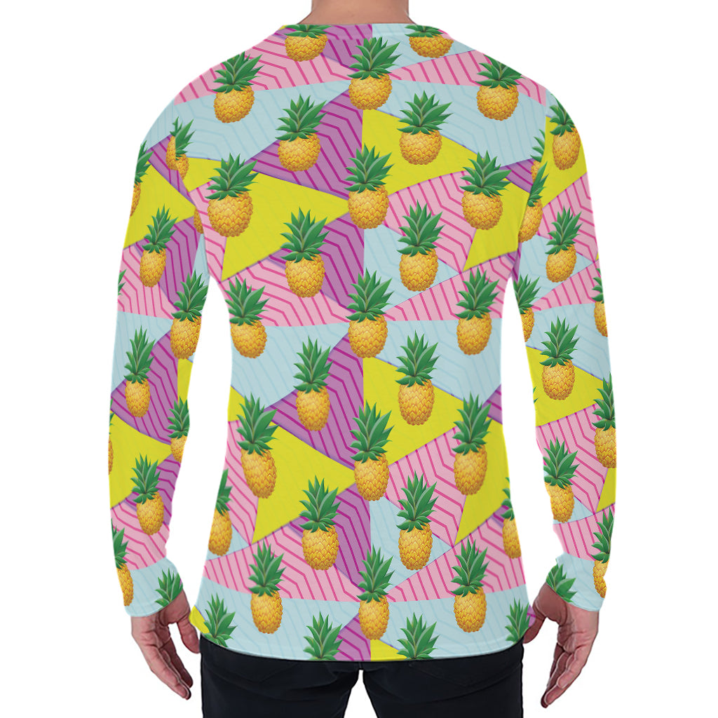 Zigzag Pineapple Pattern Print Men’s Long Sleeve T-Shirt