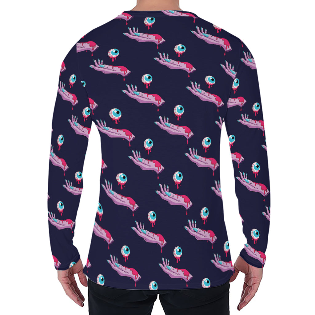 Zombie Eyeball Pattern Print Men’s Long Sleeve T-Shirt