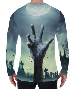 Zombie Hand Rising From Grave Print Men’s Long Sleeve T-Shirt